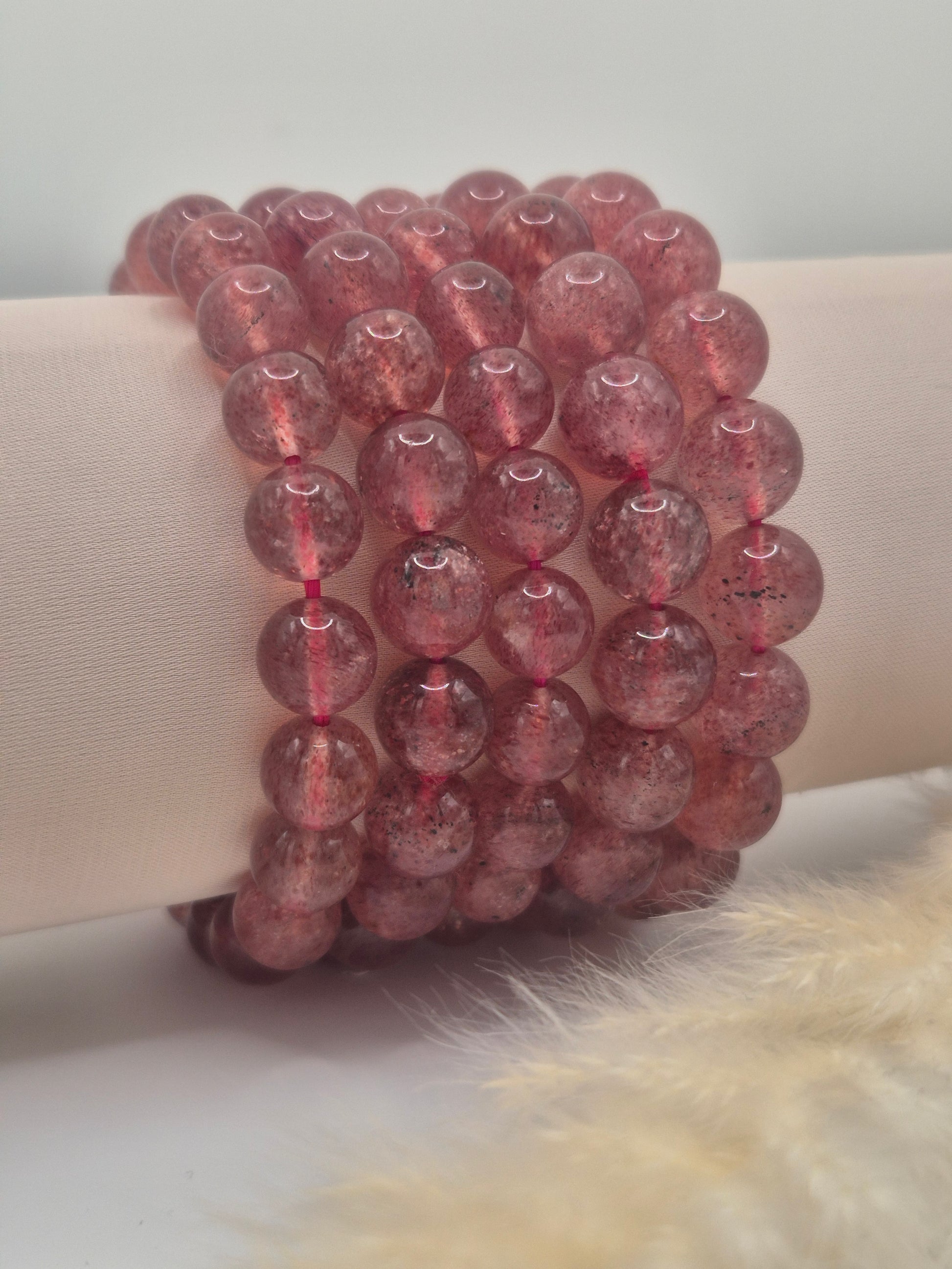Le Quartz Fraise est une pierre rare et délicate, reconnaissable à sa teinte rosée parsemée d’inclusions scintillantes. Symbole d’amour, de vitalité et de joie, il est apprécié autant pour sa beauté que pour ses vertus énergétiques. Ce bracelet en perles de quartz fraise est un véritable bijou de douceur et de lumière, à porter au quotidien.