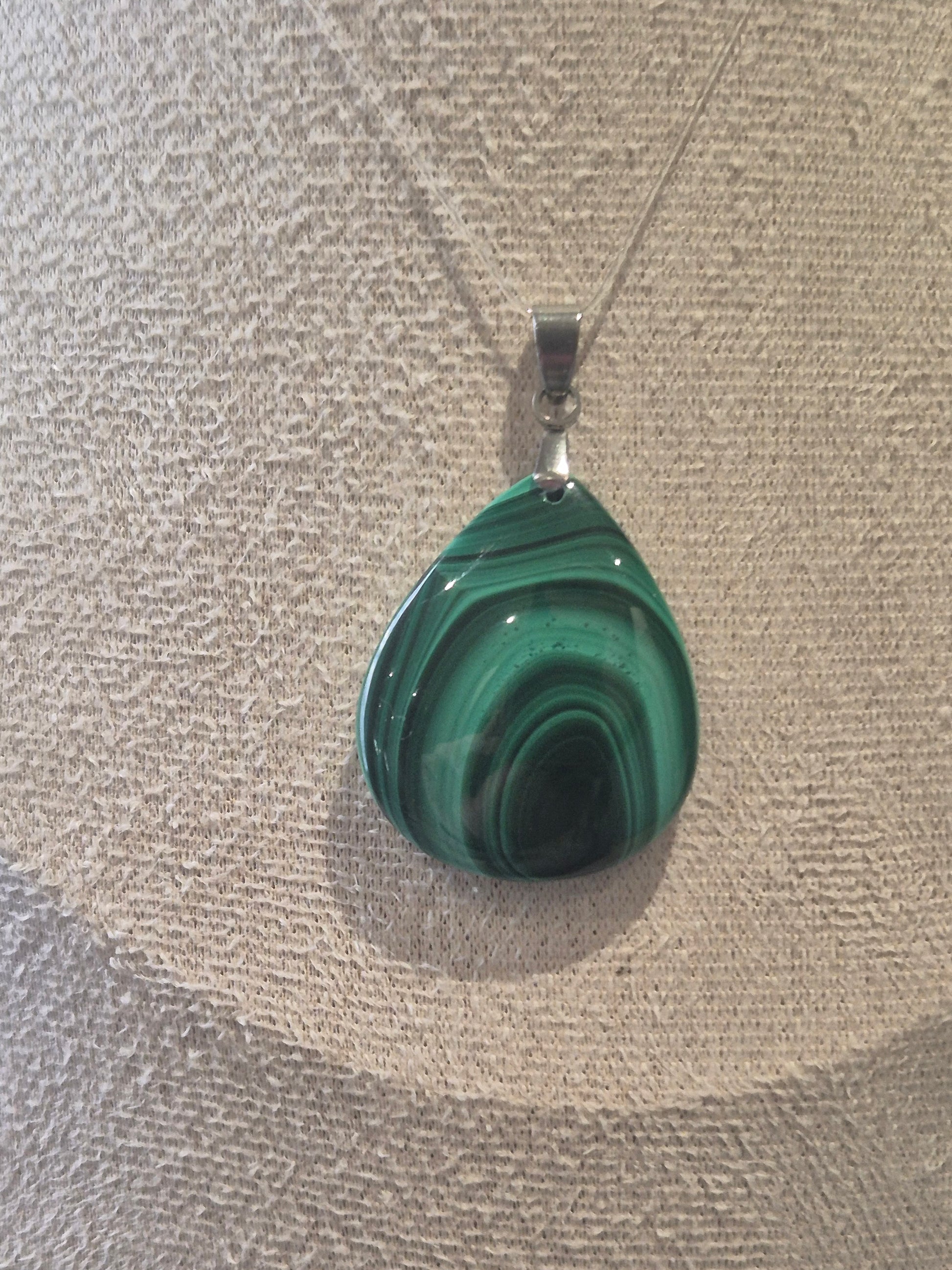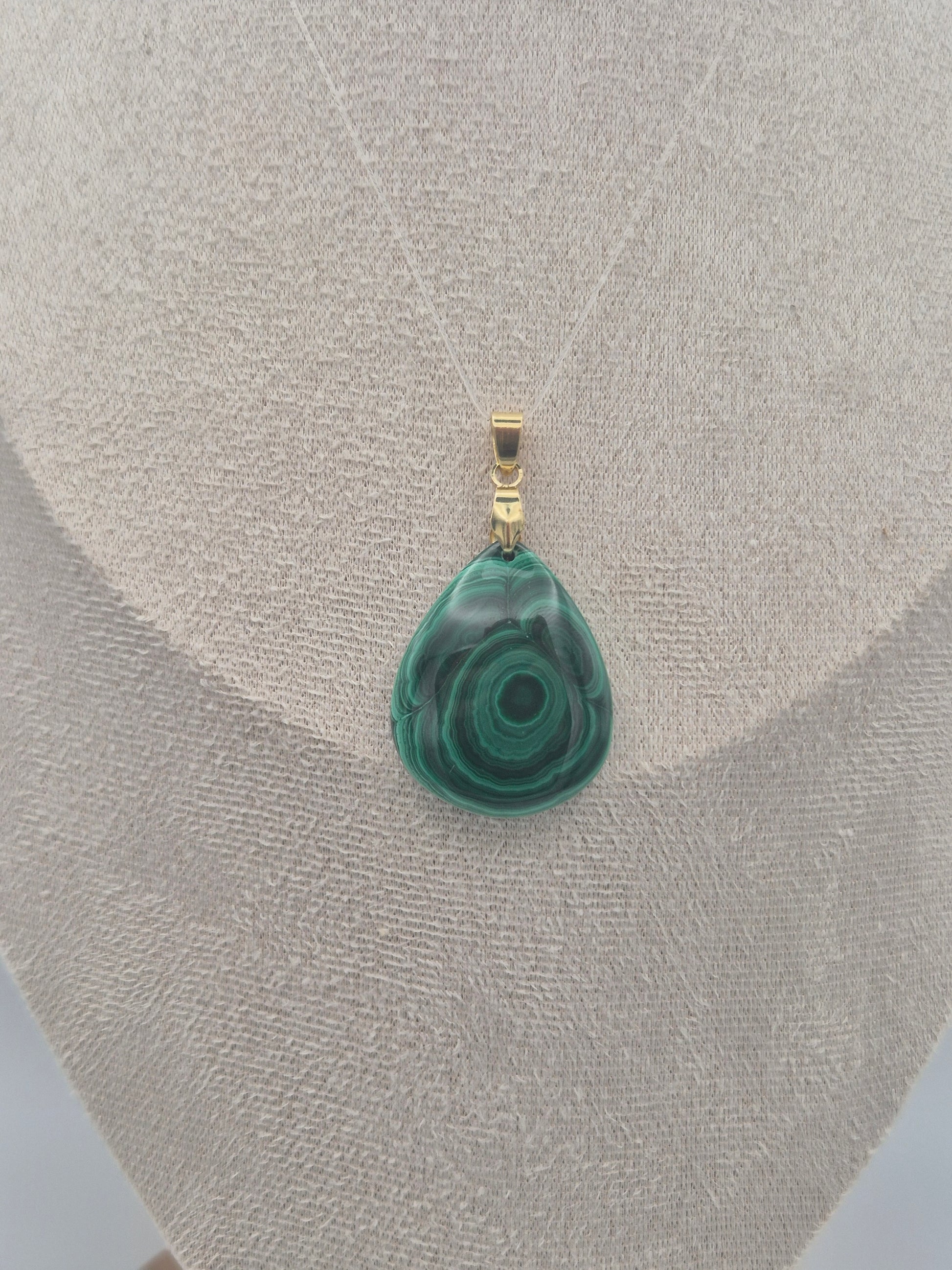 Élégant et raffiné, ce pendentif met en valeur un cabochon de malachite naturelle aux nuances vertes profondes et veinées. Monté sur un support sobre et intemporel, il s’adapte parfaitement à toutes les tenues et révèle toute la beauté de cette pierre fine.
