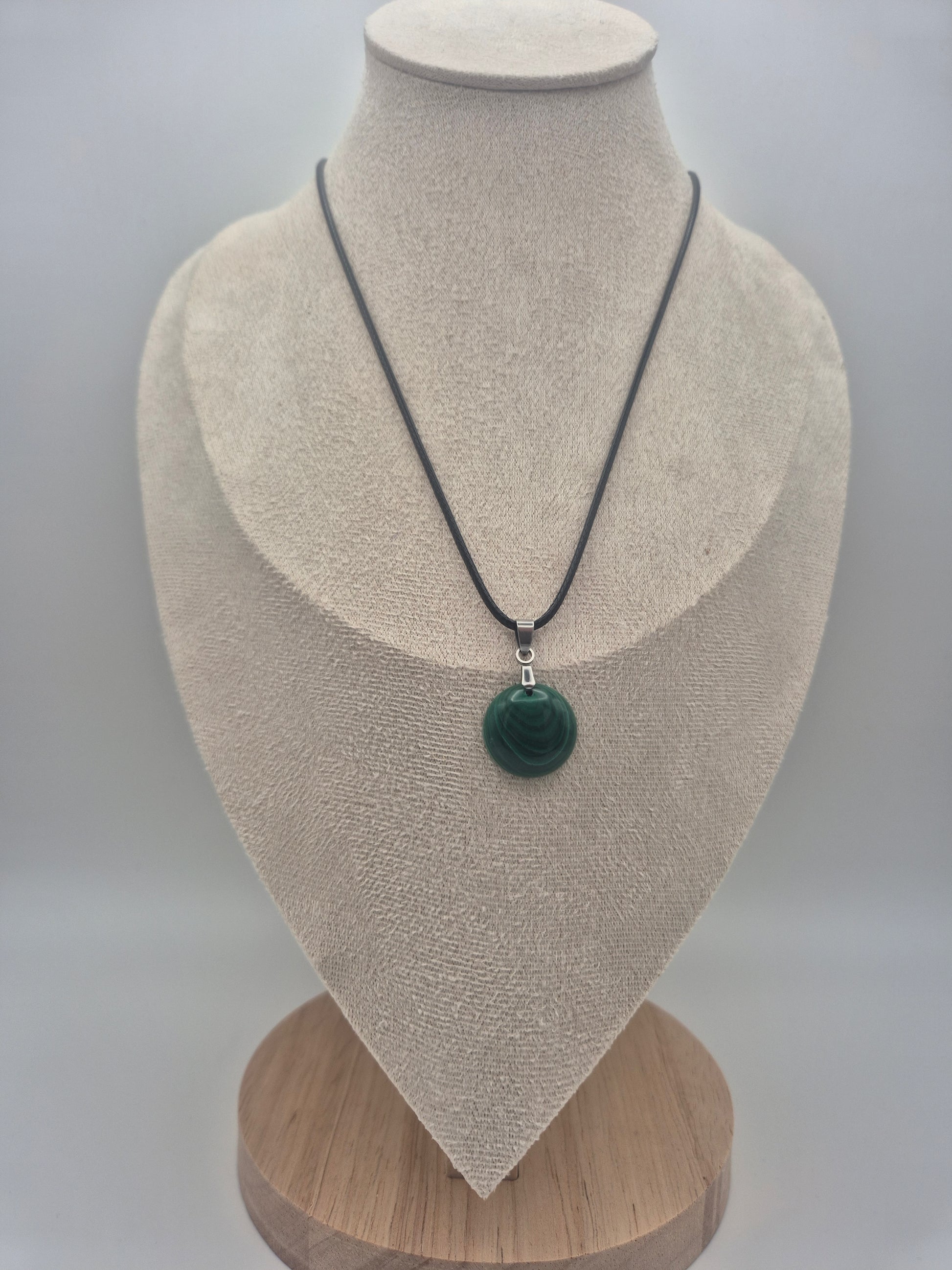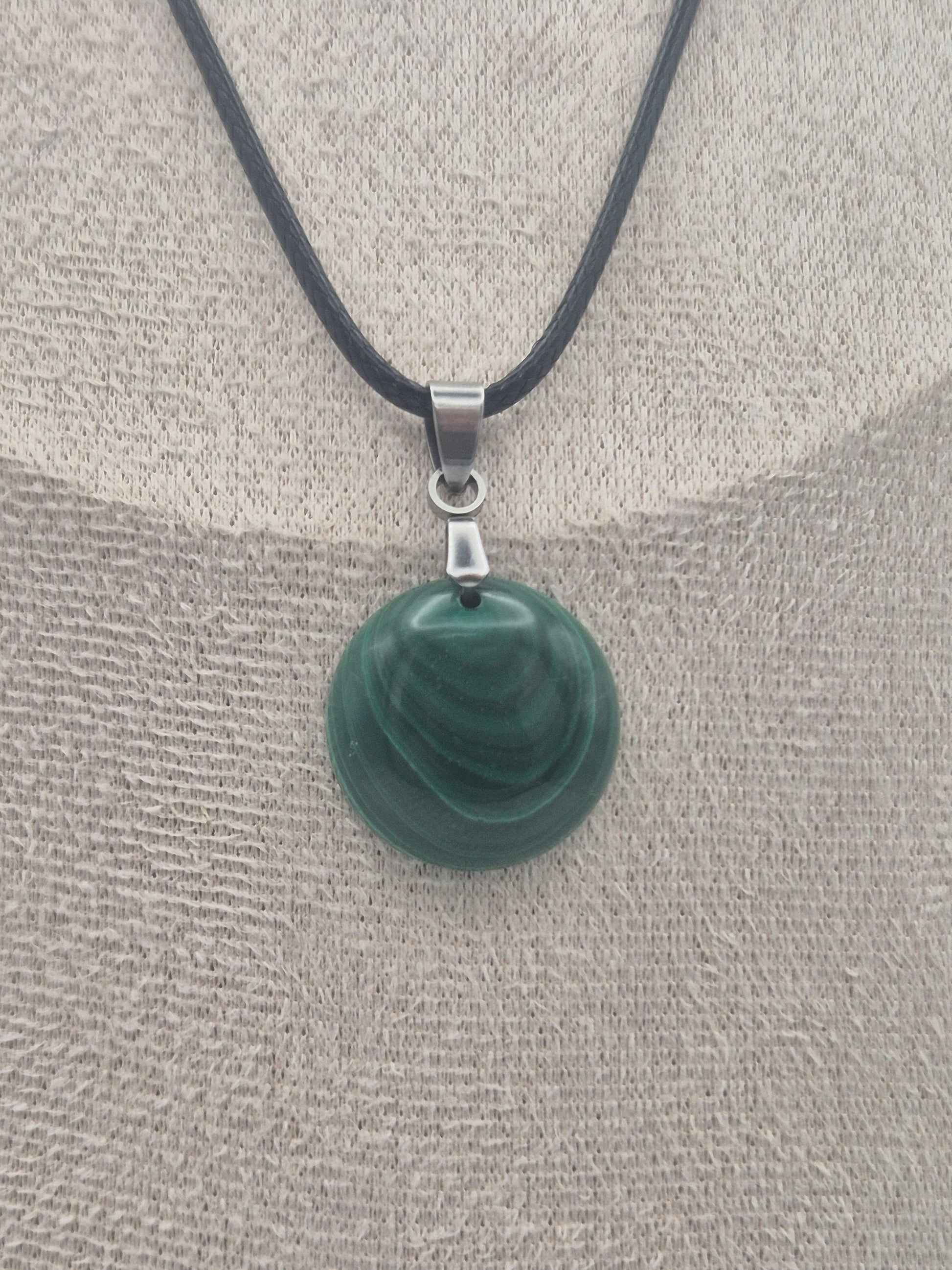 Apportez une touche d’élégance naturelle avec ce petit pendentif rond en malachite véritable. Sa pierre finement polie révèle des nuances de vert profond avec des motifs uniques, caractéristiques de la malachite naturelle. Monté sur une bélière en acier inoxydable, ce pendentif est à la fois élégant, durable et facile à porter au quotidien.